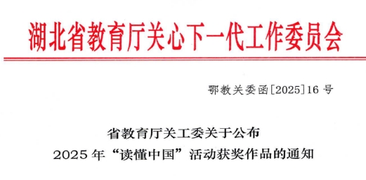近日,2025年全省高校“读懂中国”活动评选结果揭晓,学校4篇征文获评“省优秀征文”,1个视频获评“省优秀微视频”,bevictor伟德官网获评省教育厅关工委表扬单位。